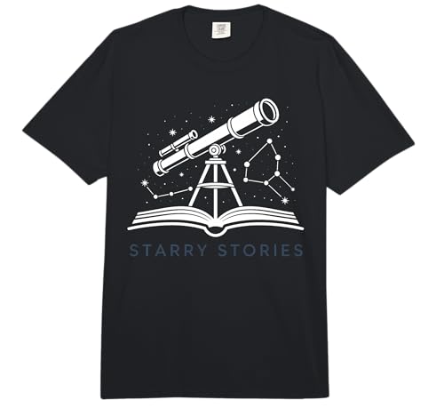Starry Stories Telescope Book Astronomy Celestial Reading Comfort Colors Adult Heavyweight T-Shirt