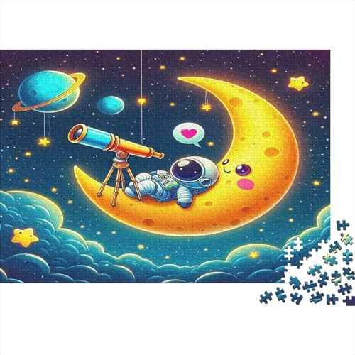 Astronaut 1000 Pc Adult Jigsaws - Astronaut Crescent Moon Telescope Dreamy Cute Impossible Hard Difficult Challenging Game for Wall Decoration And Gifts38x26cm/1000pcs