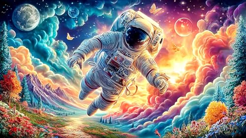 Astronaut resting on a smiling moon with telescope Adult Jigsaws 1000 Piece Recycled Paper - Fun and Challenging Family Game Home Activity 38x26/1000pcs