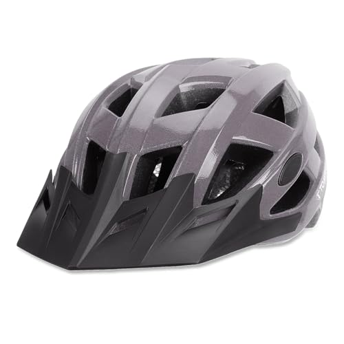 TOMSHOO Bike Helmets for Adults Lightweight Mountain Bike Helmet Adjustable Unisex Helmet with Removable Visor for Commuting and Outdoor Riding (Silver Grey)