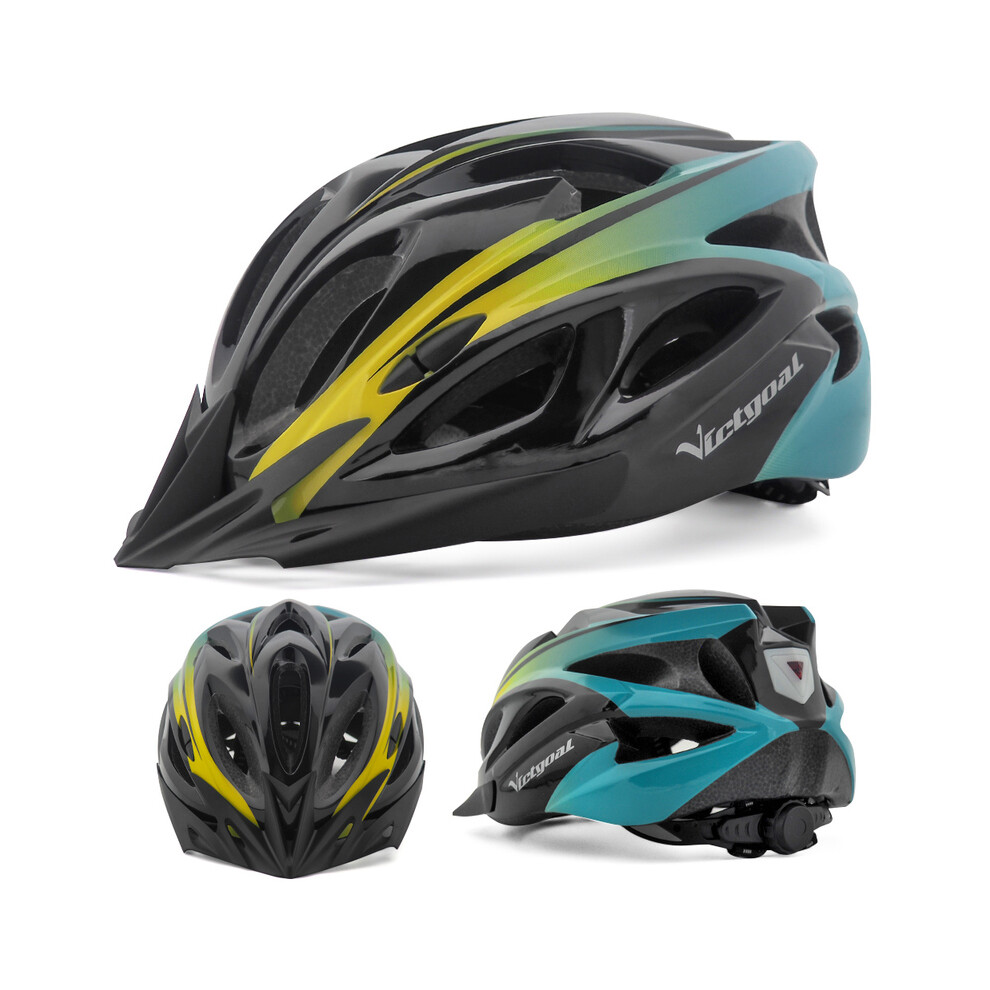 Victgoal Adults Bike Helmet for Men Women Detachable Magnetic Goggle Visor Bicycle Helmet with LED Rear Light Cycling Road Mountain Cycle Helmet (Black Cyan)