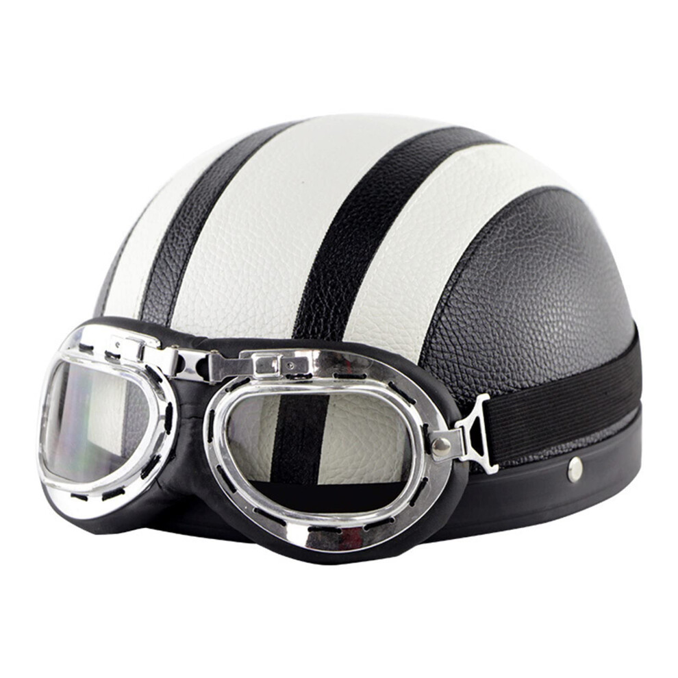 Adults Skateboard Bike Helmet Goggles Retro Half Helmet ABS Shell ECE Approved Two Removable Liners Quick Safety Buckle