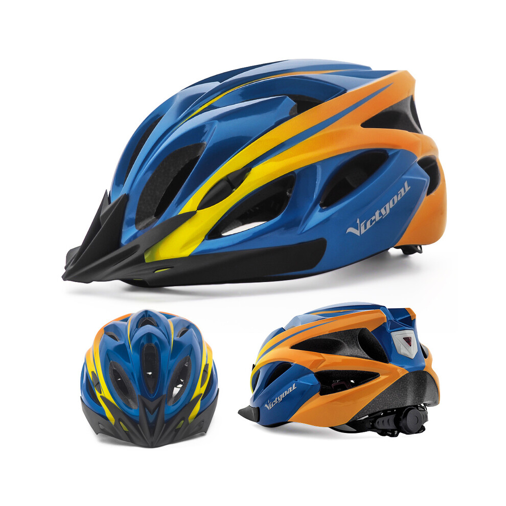Victgoal Adults Bike Helmet for Men Women Detachable Magnetic Goggle Visor Bicycle Helmet with LED Rear Light Cycling Road Mountain Cycle Helmet (Blue Orange-V)