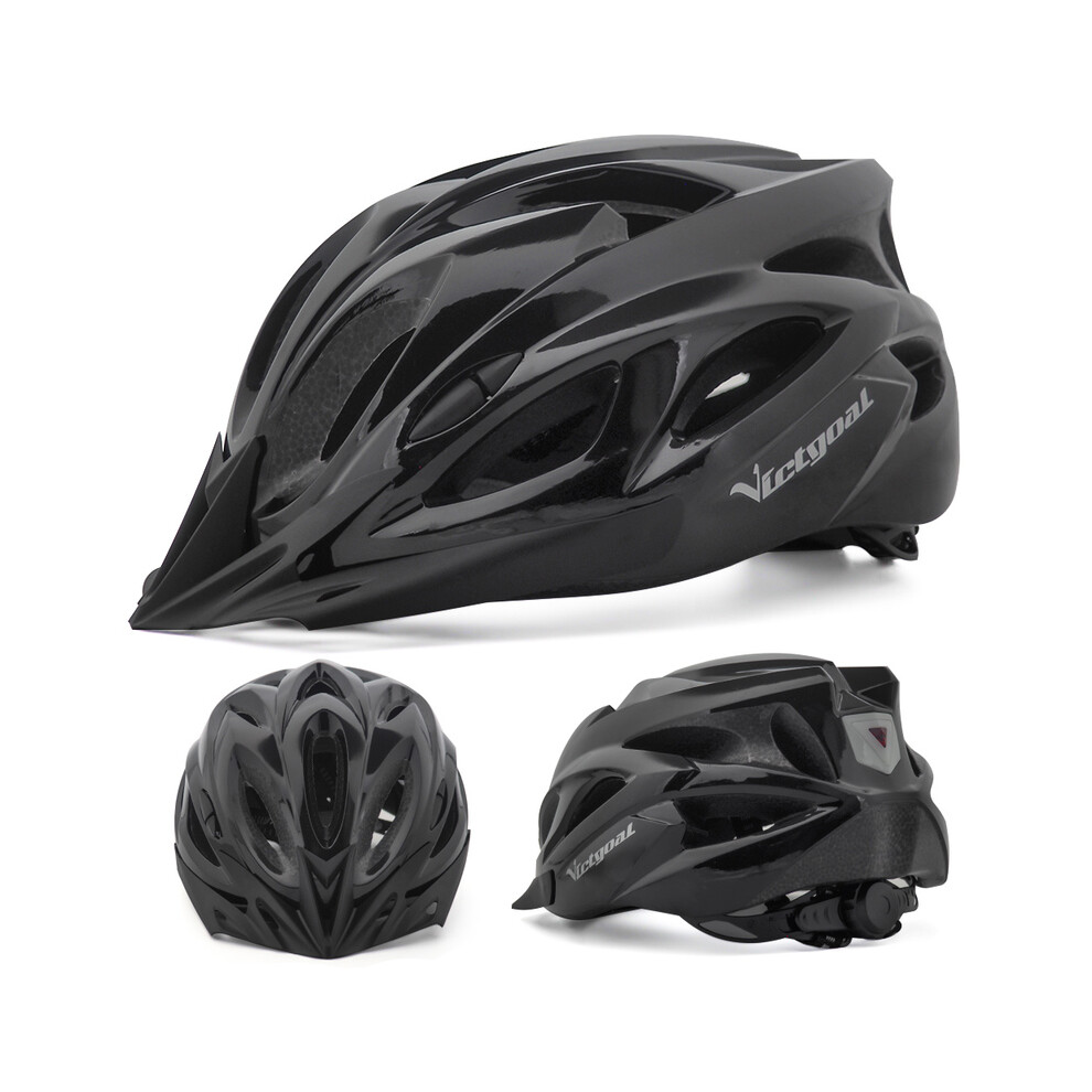 Victgoal Adults Bike Helmet for Men Women Detachable Magnetic Goggle Visor Bicycle Helmet with LED Rear Light Cycling Road Mountain Cycle Helmet (Black)