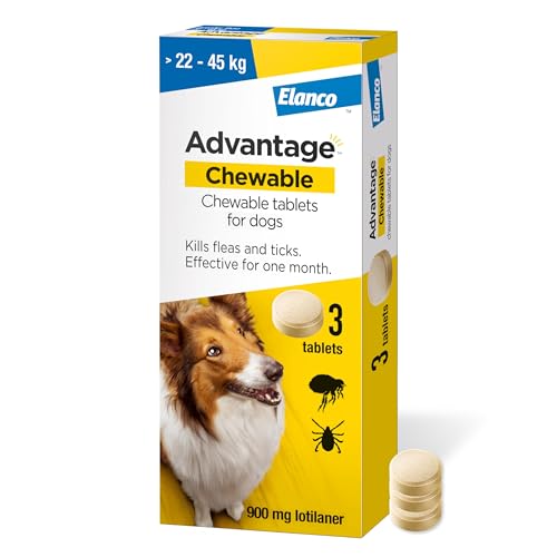 Advantage Chewable >22-45kg Chewable Tablets for Dogs 900mg (3 pack), Flea and Tick Treatment, Fast Acting Kills Fleas Within Hours, Prevention Lasts For A Month, Easy To Administer