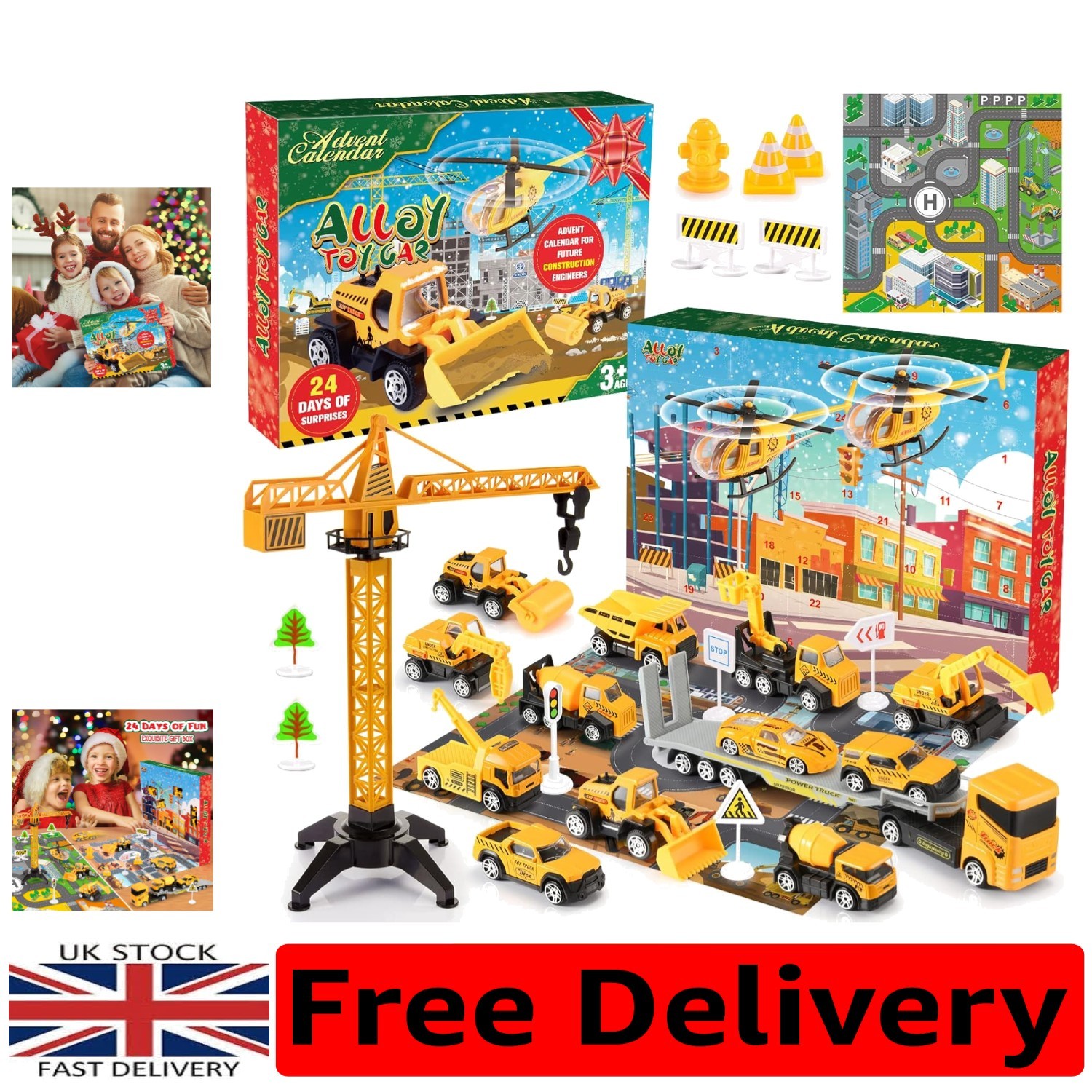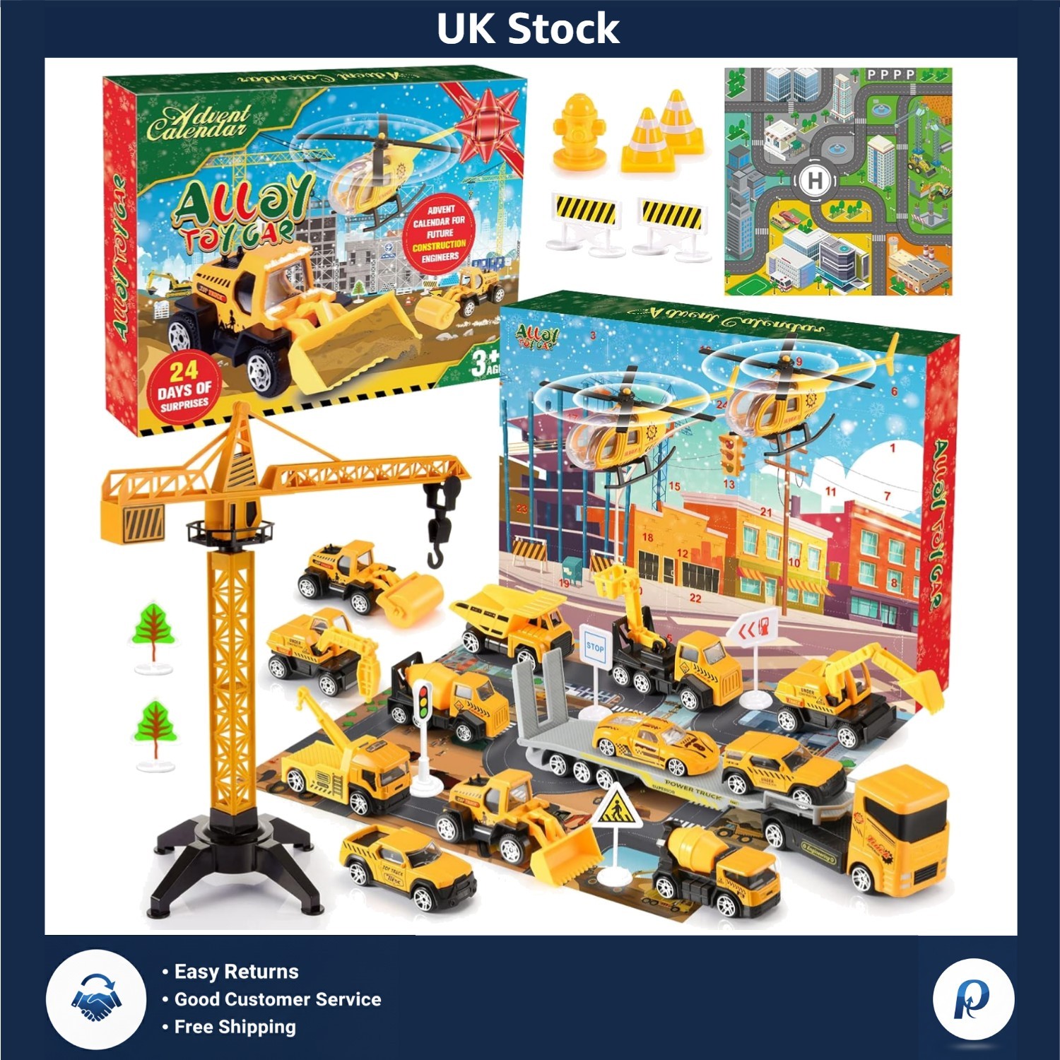 (Cars) 24pcs Holiday Countdown Advent Calendar - Excavator & Fire Truck Themes