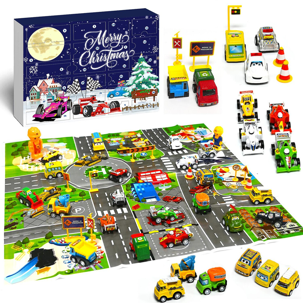 Advent Calendar Cars Set Toys, Casting Cars, Race Cars, Christmas Gifts for Kids Boys Girls