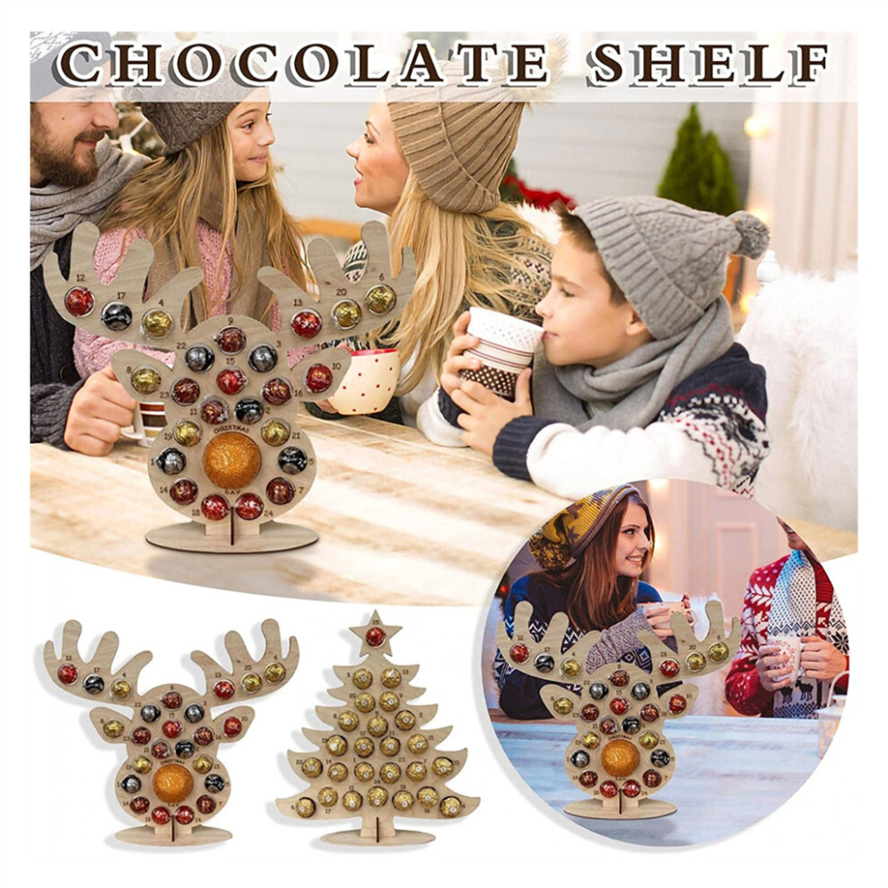Christmas Wooden Advent Calendar Chocolate Holder Countdown Xmas Party Decor Elk
