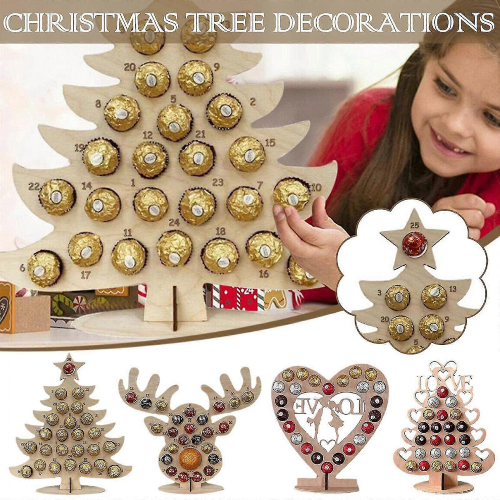 Christmas Wooden Advent Calendar Chocolate Holder Countdown Xmas Tree Party Decor