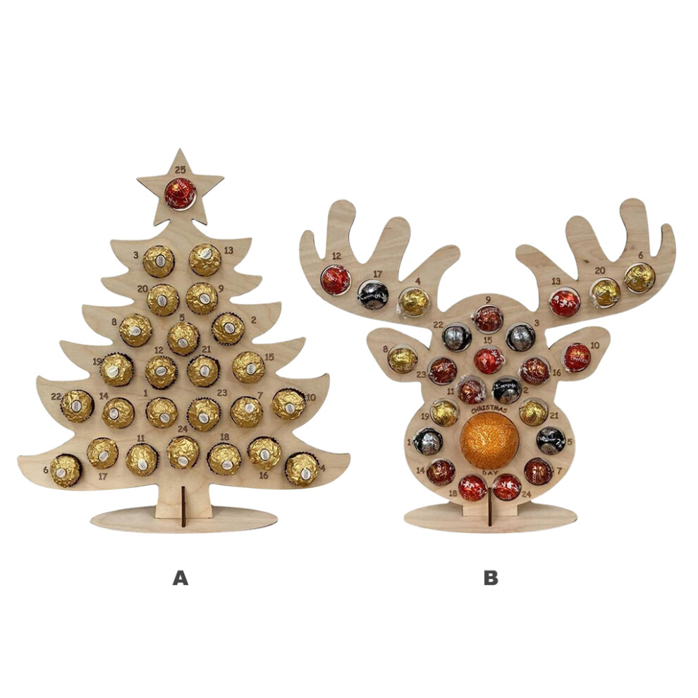 2025 Wooden Advent Calendar Christmas Tree Chocolate Candy Stand 37x33CM Elk Ornament Display Rack Home Decoration