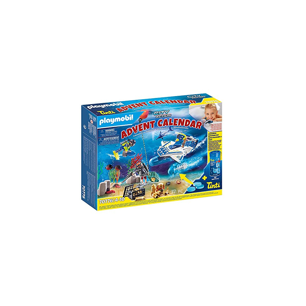 PLAYMOBIL Advent Calendar 70776 Bathtime Fun Police Diving Mission, For ages 4+