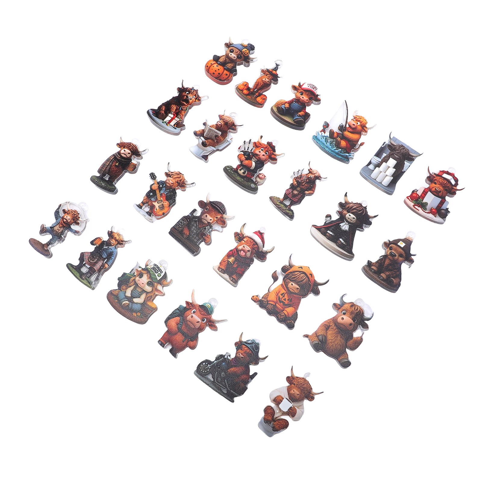 ZDAGELD Highland Cow Advent Calendar 2025 Xmas Fun Countdown, 24 Days Highland Cow Xmas Hanging Ornaments for Tree, Home Decoration with Strings