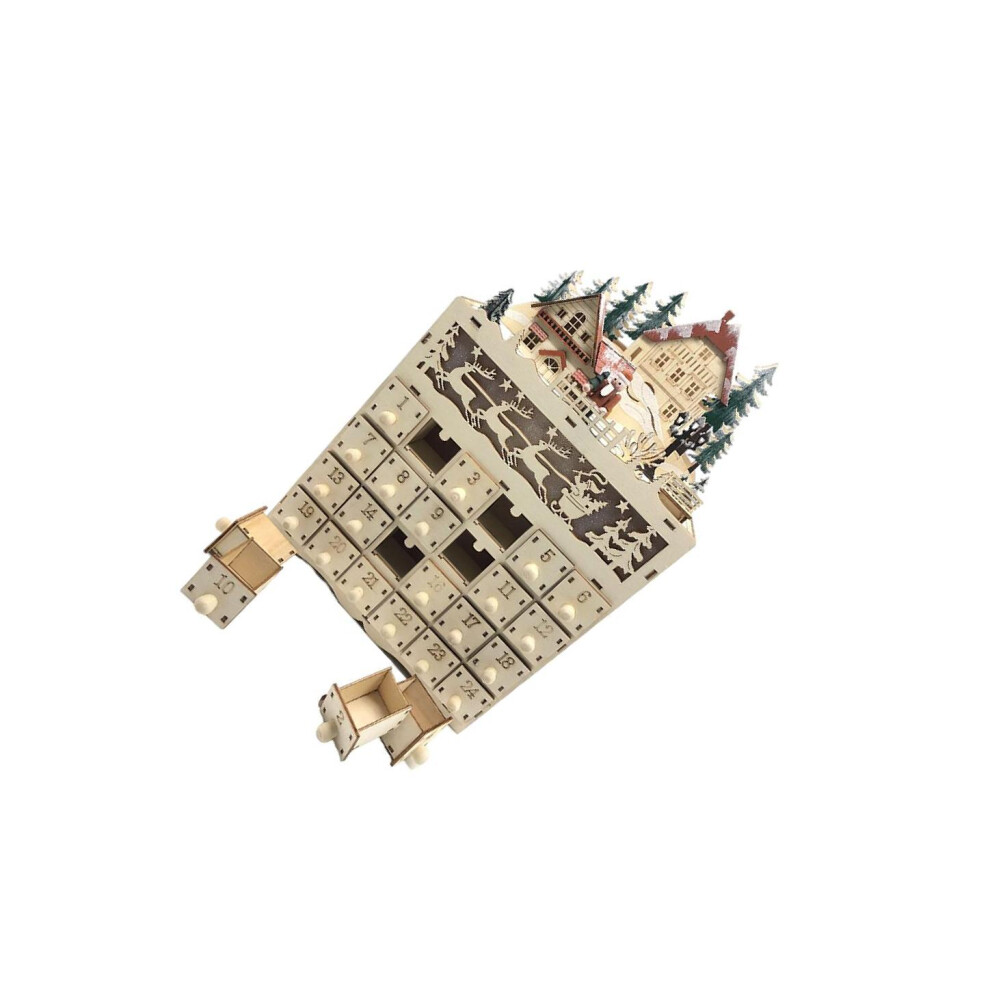 KTUXZCI Wood Advent Calendar With 24 Drawers Led Light Holiday Countdown Family Fun Christmas Decoration Idea Led Light Countdown Calendar Holiday Decoration Christmas Wooden