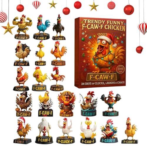 Hugsweet Chicken Advent Calendars 2025-24 Day Christmas Countdown Calendar With Cute Chick Ornaments, 2D Acrylic Trendy F-caw-f Chickens Pendant Christmas Tree Decor For Kids Adults Teens