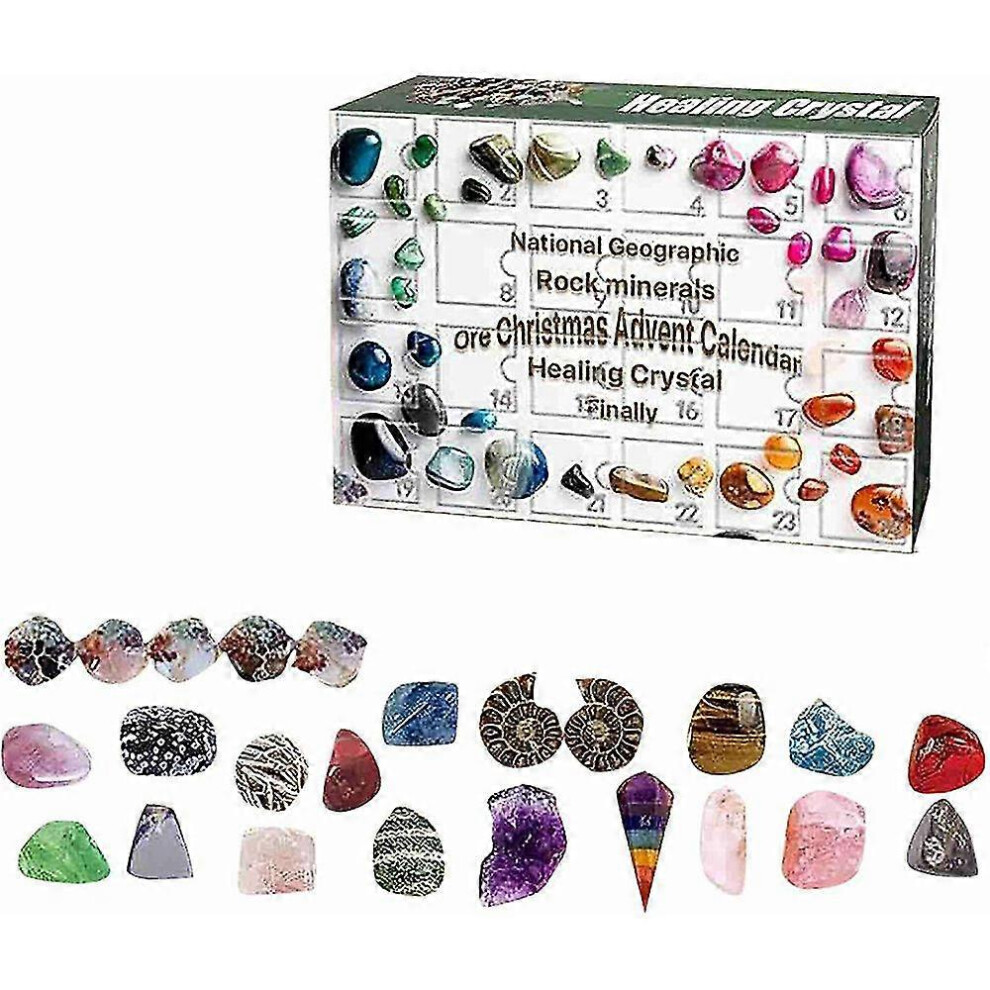 2022 Christmas 24 Days Countdown Advent Calendars Kids Xmas Gift - Healing Crystal Natural Stone Rocks Surprise Blind Box