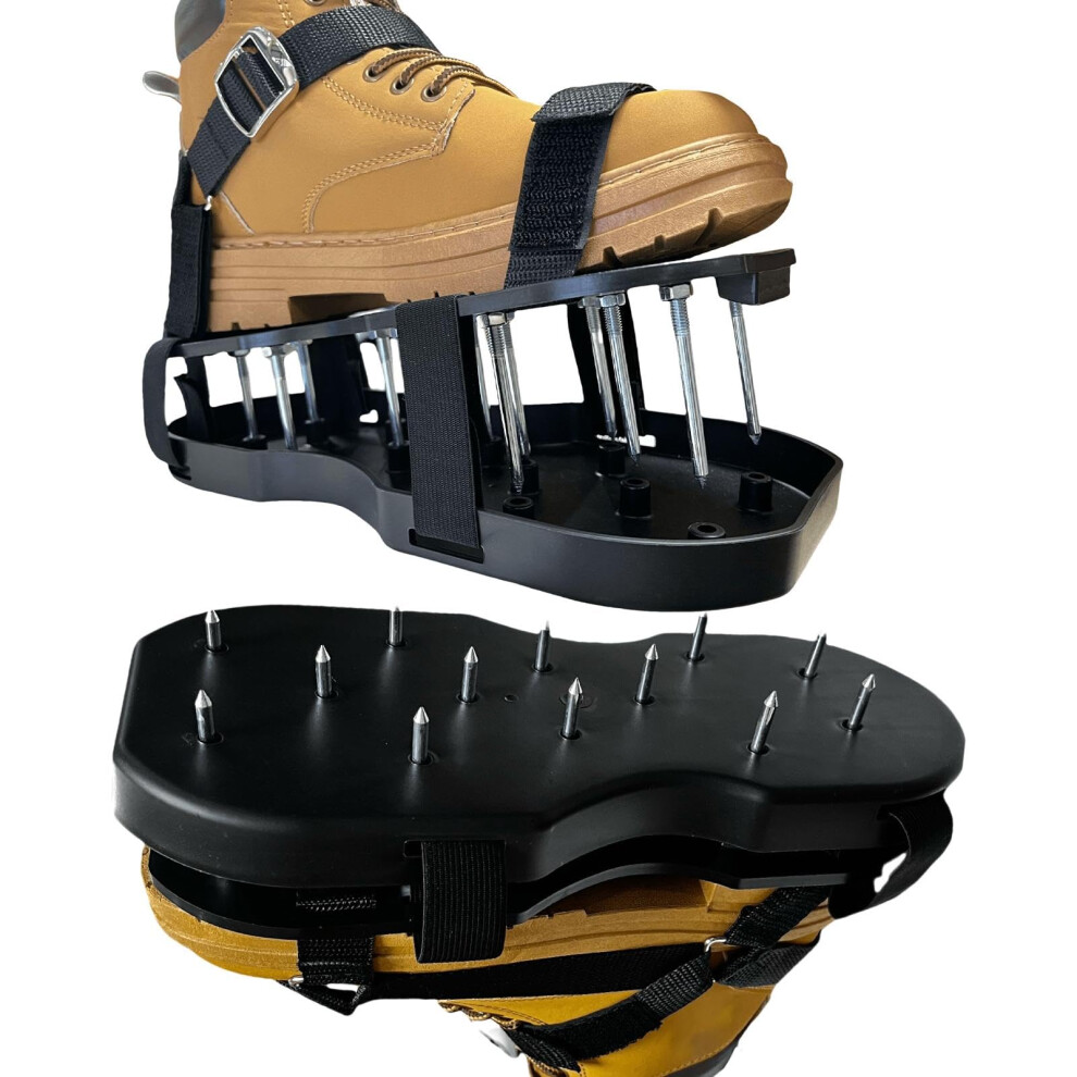 Garden Mile® Stylish Lawn Aerator Shoes - Reusable Garden Equipment Universal Fit 13x 5cm Stainless Steel Spikes and Straps ABS Aerator Sandals - Manual Outdoor Working Accessories for Garden or Lawn