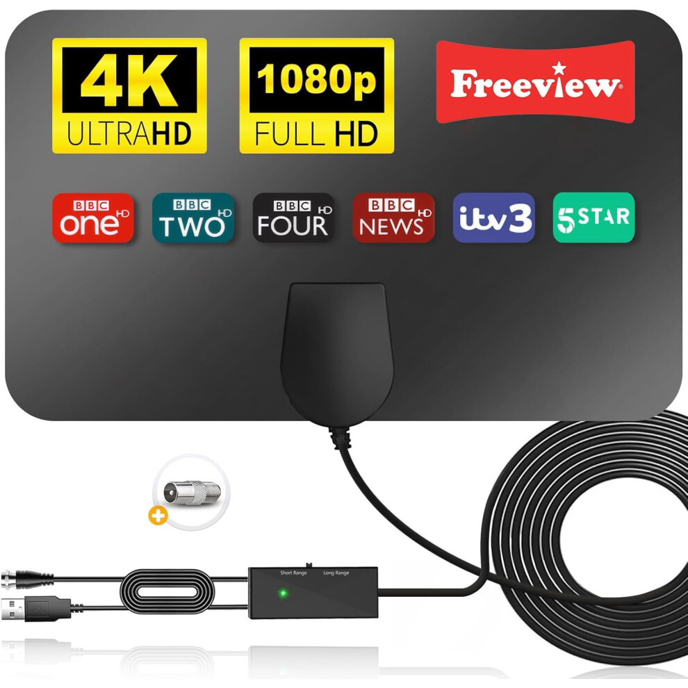 Indoor TV Aerial with Signal Booster High Gain Freeview TV Antenna for 4K 1080P