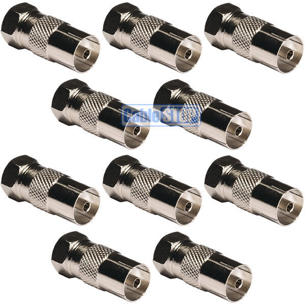 10 x Female COAX Socket to F Type Male Plug TV Aerial Sky Sat Connector Adapter