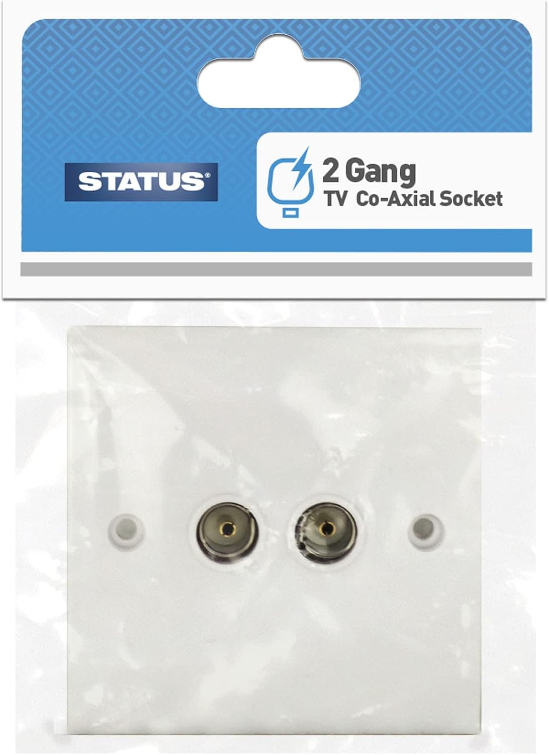 STATUS TV Aerial Socket | 2 Gang Double Coaxial TV Aerial Connector | White Pla