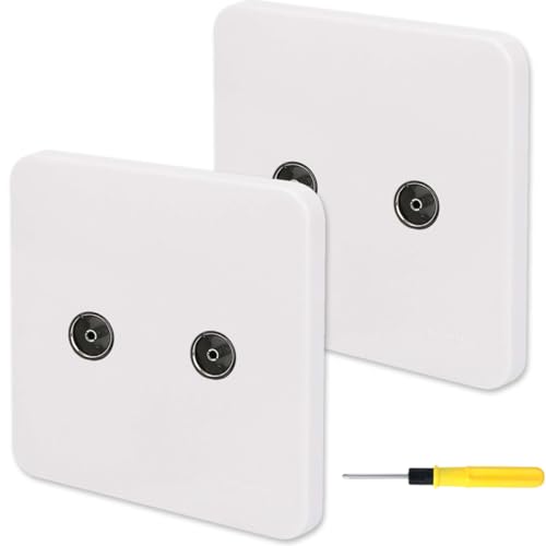 Acmerota TV Aerial Socket Co-Axial Aerial TV Wall Plate for TV or FM Coaxial Aerial Connection Home Office School, White, Square Edge (Pack of 2)