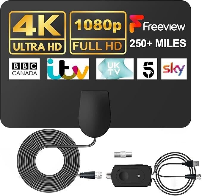 TV Aerial Indoor 250+ Miles Long Range, 4K Digital TV Aerial for Freeview TV,TV