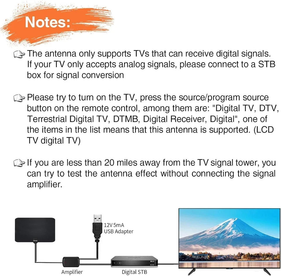 2026 Newest HDTV Aerial - Indoor TV Aerial for Smart TV with Signal Booster - Di