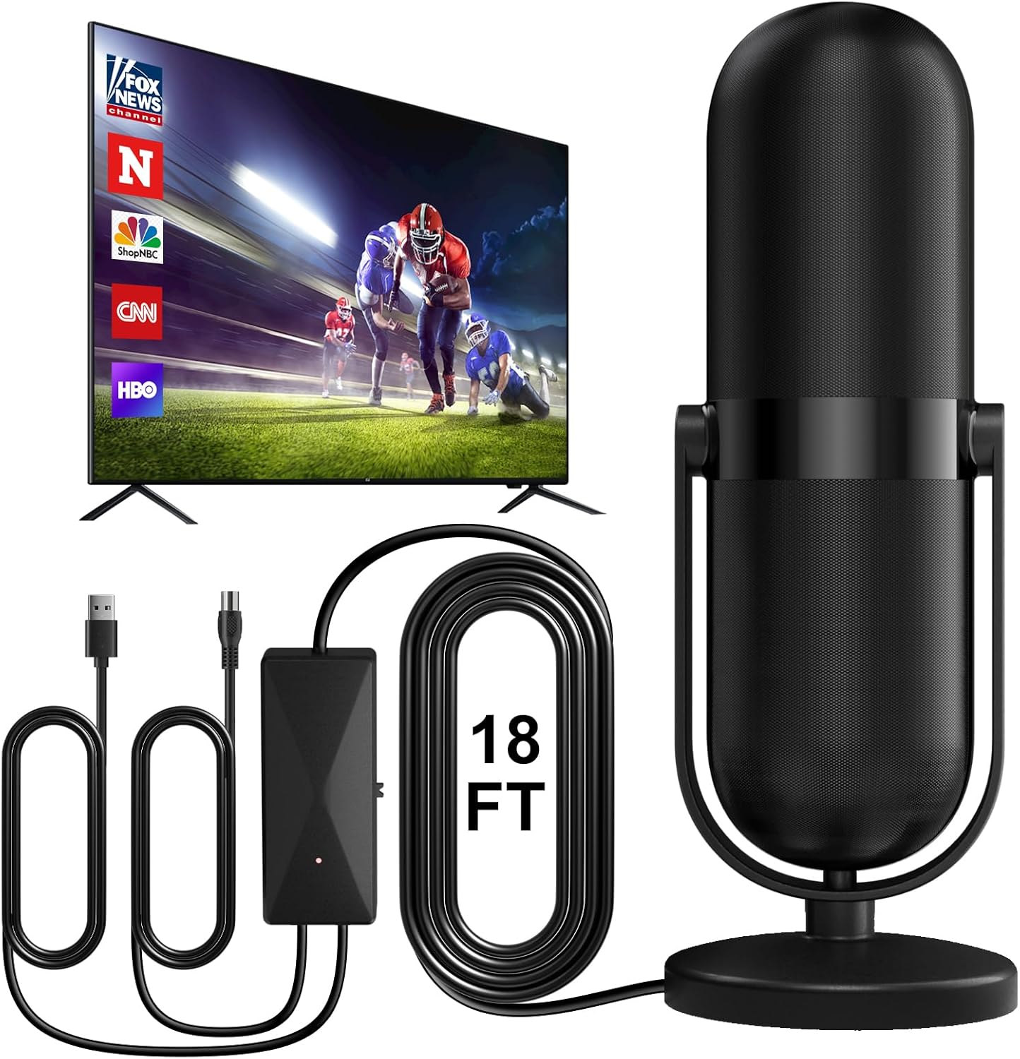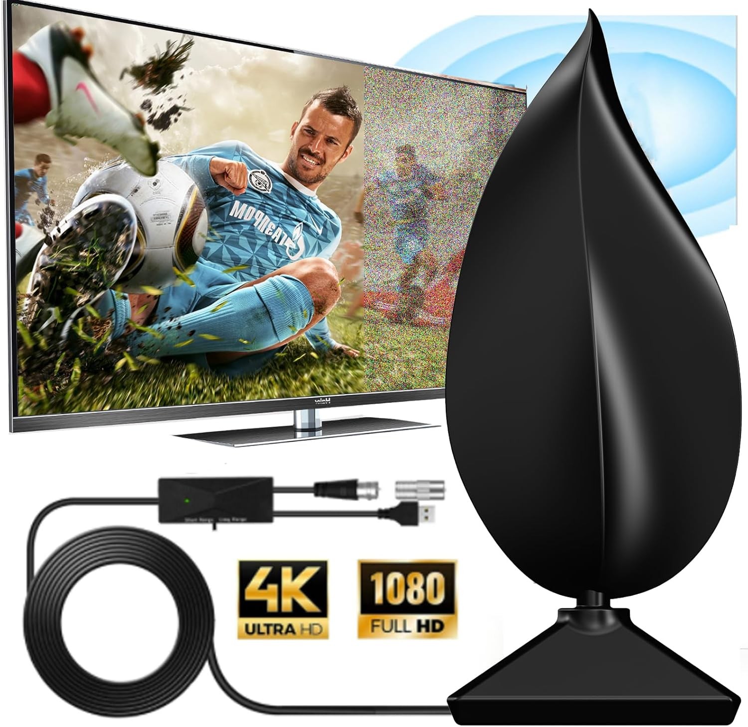Indoor TV Aerial with Signal Booster â 4K Ultra HD Freeview Antenna, 360 Reception, 560+ Miles Range, USB-Powered