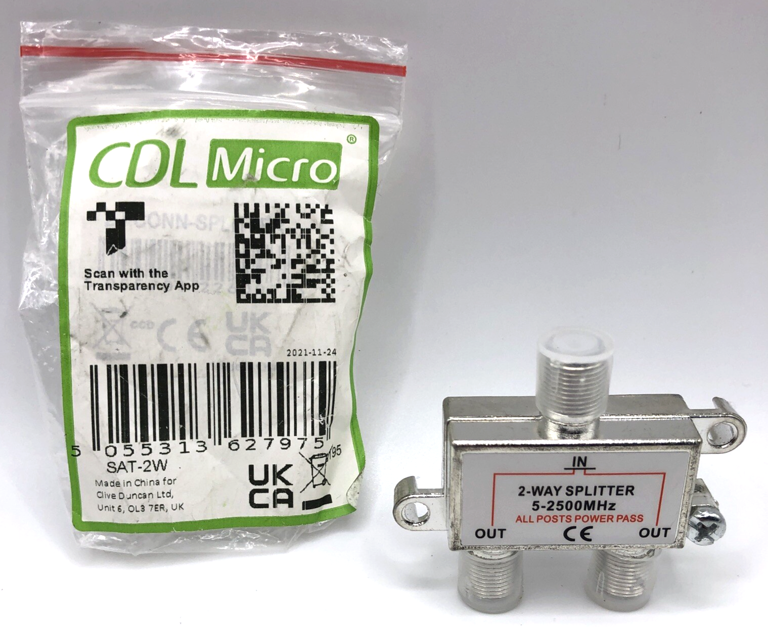 2 Way TV Aerial Splitter Connector Coax Coaxial F Type Screw Satellite CDL Micro