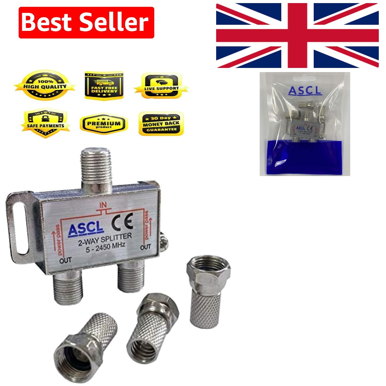 ASCL 1 in 2 Out Aerial TV Splitter suitable for Freeview Virgin Media Coax Cable