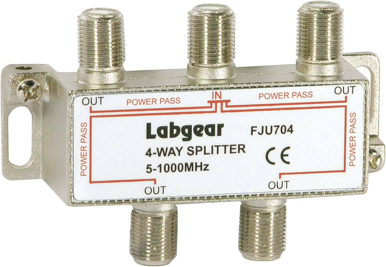 Labgear 4 Way UHF TV Aerial Splitter – Signal Distributor, Power Pass All Ports,