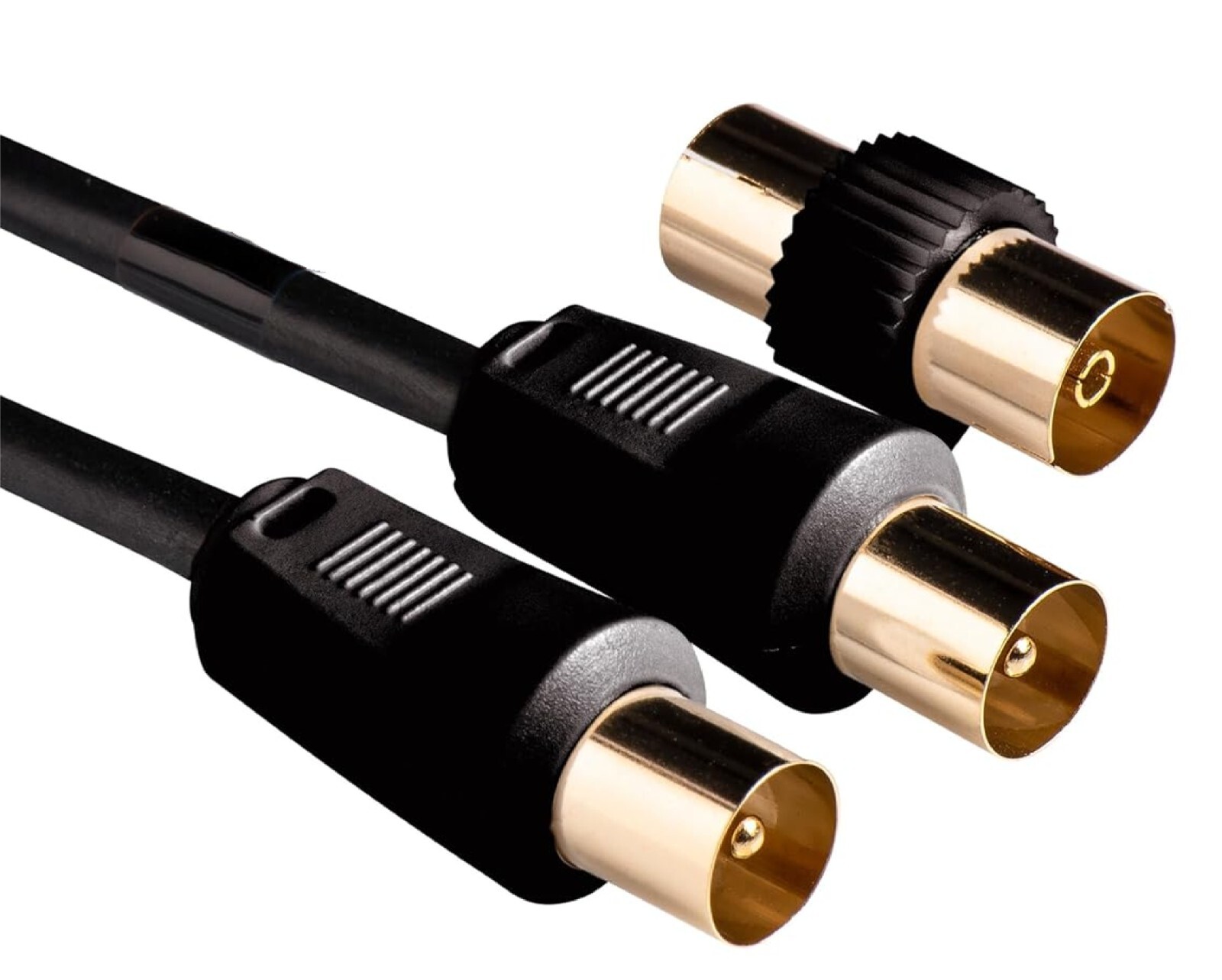 TV Aerial Cable 1m – Male to Female Coaxial Wire with Gold Plated Plugs| Plug