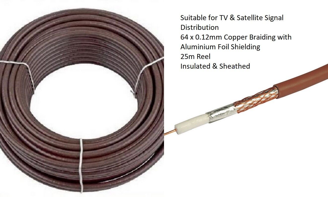 LABGEAR RG6 TV AERIAL DIGITAL SKY SATELLITE VIRGIN COAX CABLE BROWN 25M WIRE
