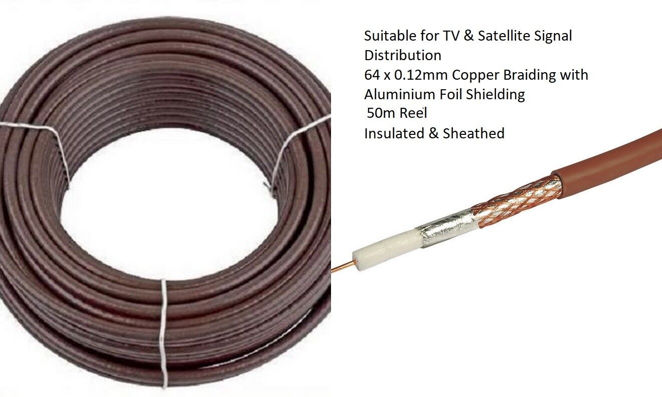 LABGEAR RG6 TV AERIAL DIGITAL SKY SATELLITE VIRGIN COAX CABLE BROWN 50M WIRE