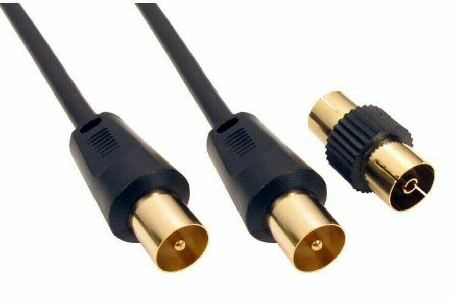 3m Coaxial Coax TV Telly Lead Aerial Cable with Adaptor GOLD Fly Wire Black