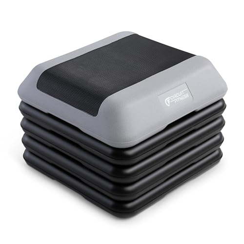 Circuit Fitness by Marcy 16 x 16 inches Adjustable Height Aerobic Step Platform with 4 Risers, Non-Slip Rubber Surface, Home Exercise Fitness Training, Cool Gray, STEP-GRAY01-4R