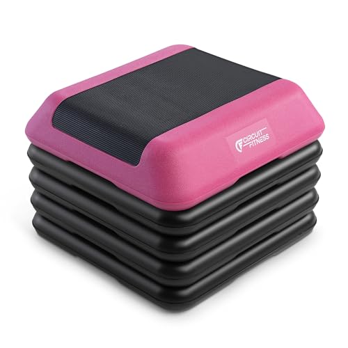 Circuit Fitness by Marcy 16 x 16 inches Adjustable Height Aerobic Step Platform with 4 Risers, Non-Slip Rubber Surface, Home Exercise Fitness Training, American Pink, STEP-PINK01-4R