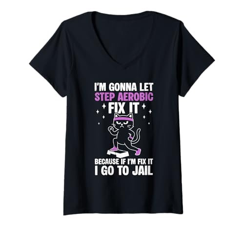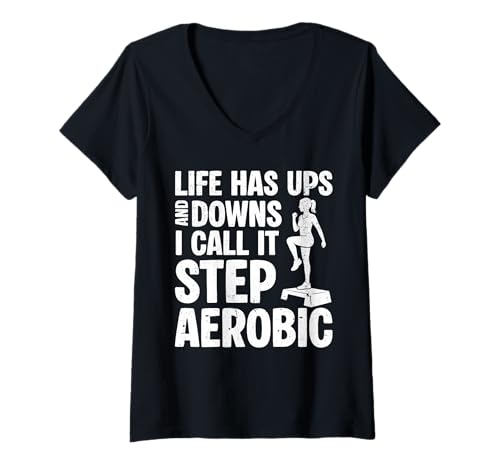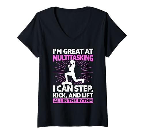 Womens Step Aerobic Workout Step Class V-Neck T-Shirt
