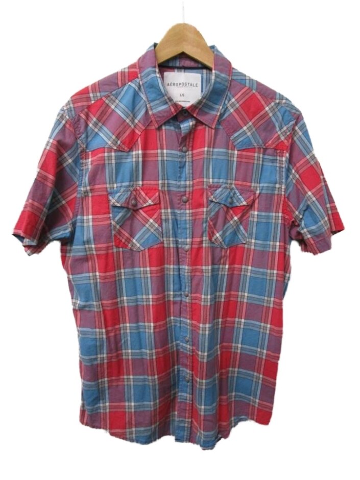 Aeropostale Check Shirt Red & Turquoise Size: L