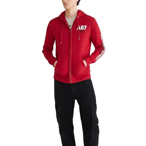 AEROPOSTALE Men's Aero Logo Full Zip Hoodie-Left Chest Hooded Sweatshirt, Cerise Red, S