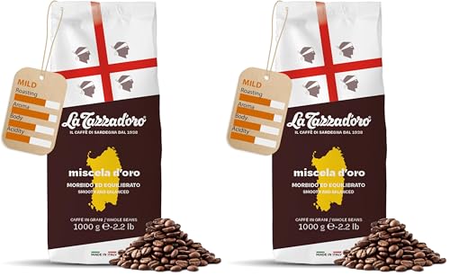 La Tazza D'oro Italian Coffee Beans 1kg Medium Roast - Miscela D'oro from the Heart of Sardinia, Finest Whole Coffee Beans for Cafetiere, Moka Pot, Aeropress and Filter Brew - Part of the Kimbo Family