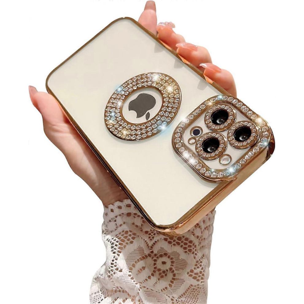 Compatible for iPhone 13 Pro Max Case with Luxury Clear Plating Logo View Glitter Cute Diamond Sparkly Design Aesthetic Women Teen Girls Phone Cases