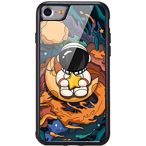 MAYCARI Aesthetic Art Spaceman Astronaut Pattern Cases for iPhone 7/8/SE 2020,Cute Slim Soft TPU Hard Back Shatter-Resistant Shockproof Anti-Fall Protective Girly Painting Art Cover Case for Girls