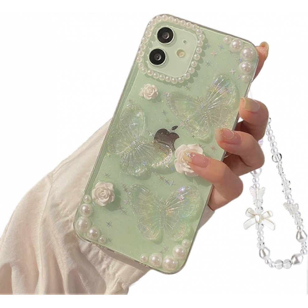 iPhone 12/12 Pro 3D Butterfly Floral Clear with Design Aesthetic Women Teen Girls Glitter Pretty Crystal Sparkle Sparkly Cute Girly Phone Cases Prote