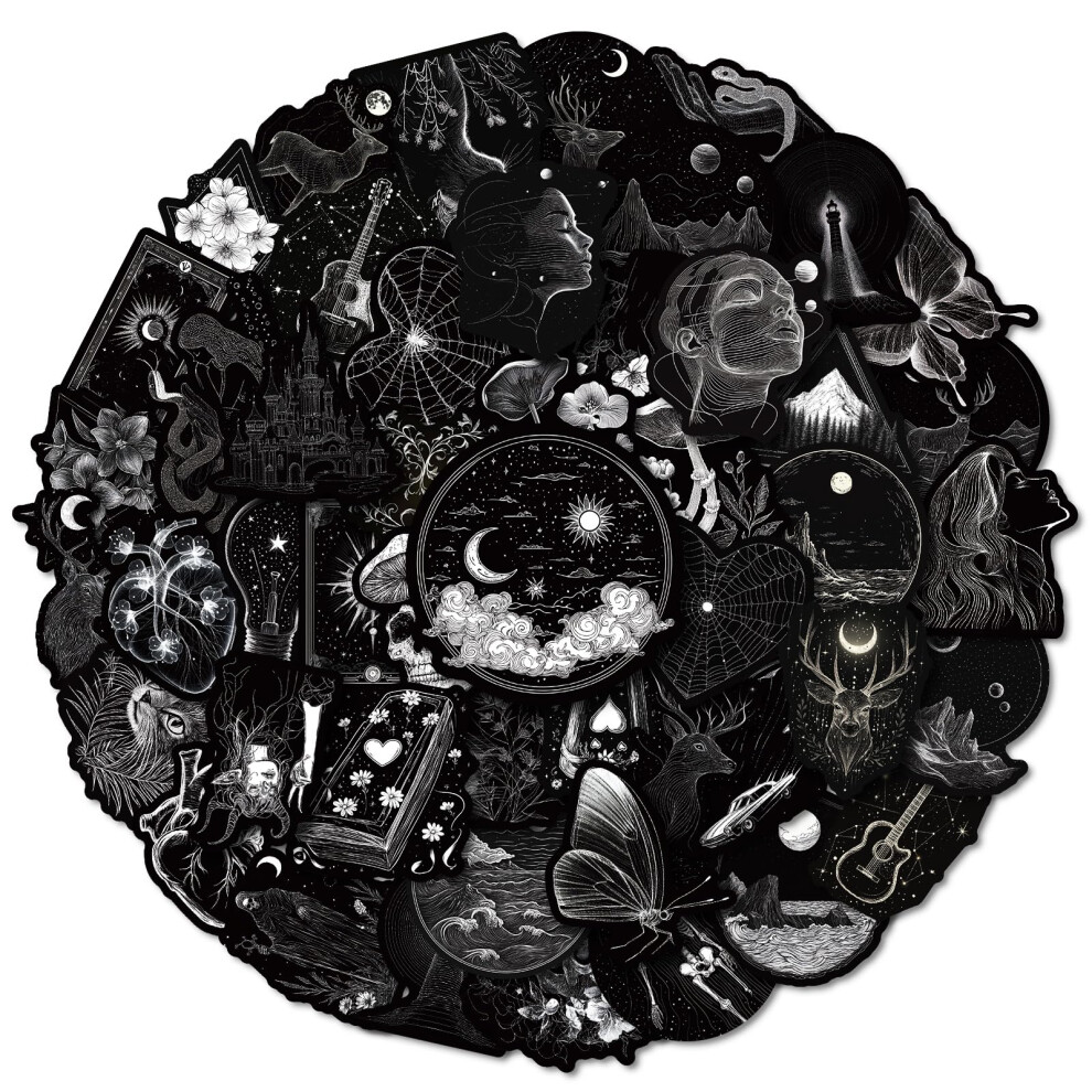 50PCS Black Aesthetic Vinyl Stickers, Waterproof for Scrapbooking, Laptops, Water Bottles, Phone Cases, Easy Peel