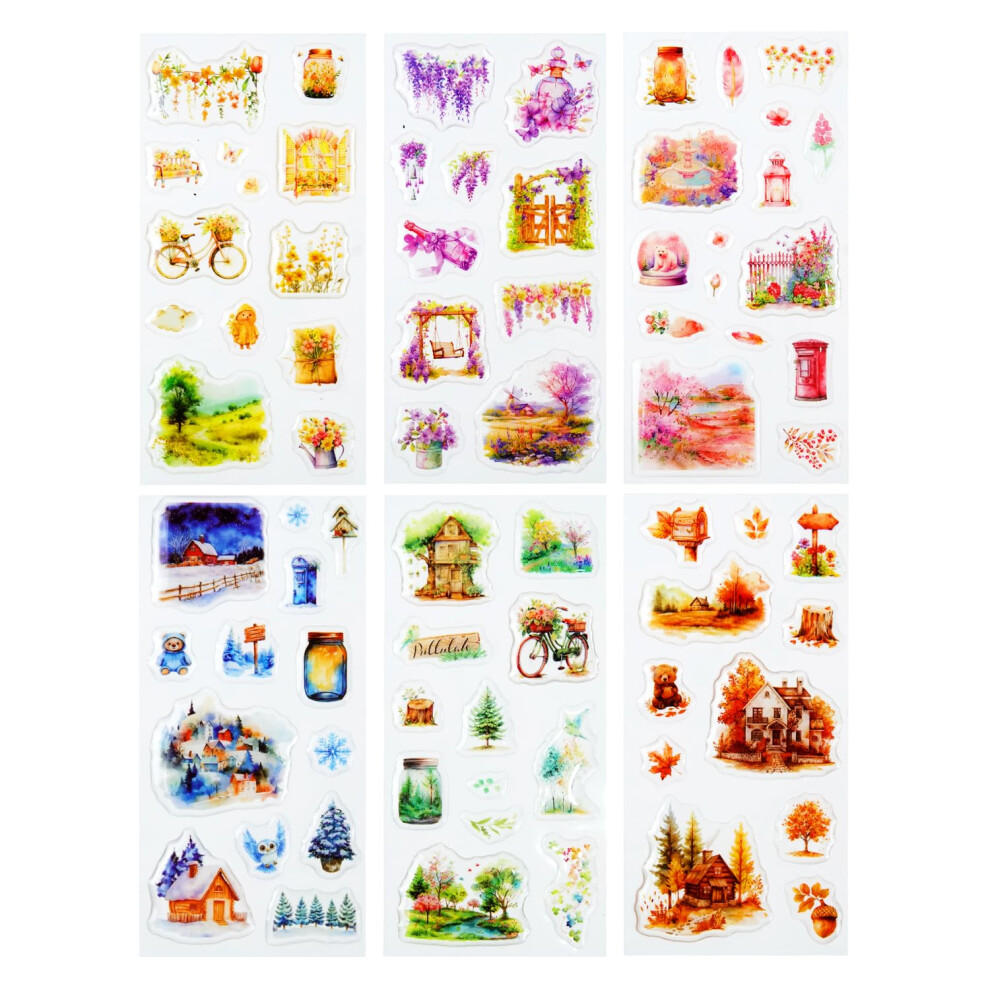 Miyouluna 6pack Landscape 3D Epoxy Stickers Cottagecore Aesthetic Scrapbook Supplies for Journaling DIY Crafts Phone Cases & Decorative Projects