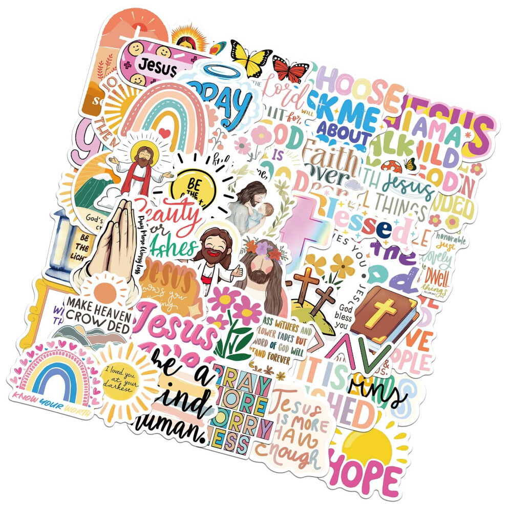 50 pieces of inspiring Bible quote stickers, aesthetic stickers for notebooks, diaries, water bottles, laptops, scrapbooks, phone cases.