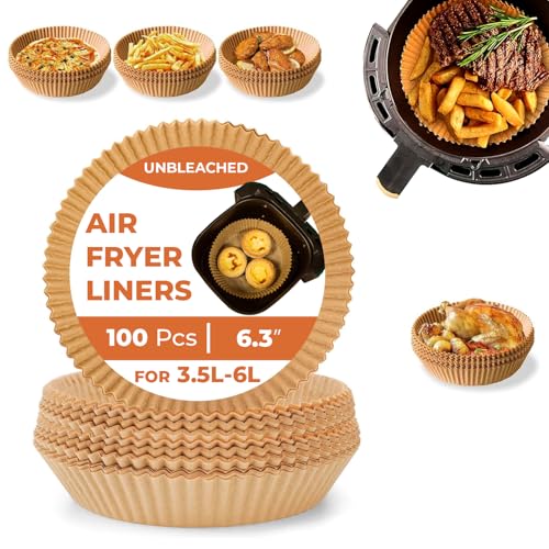 YQL Disposable Air Fryer Liners Round 6.3 Inch, 50pcs Non Stick Greaseproof Parchment Paper Liners for Airfryer 3.5L-6L, Compatible with Ninja AF100UK,Tower,Cosori,Keplin&Other Single Airfryer Small
