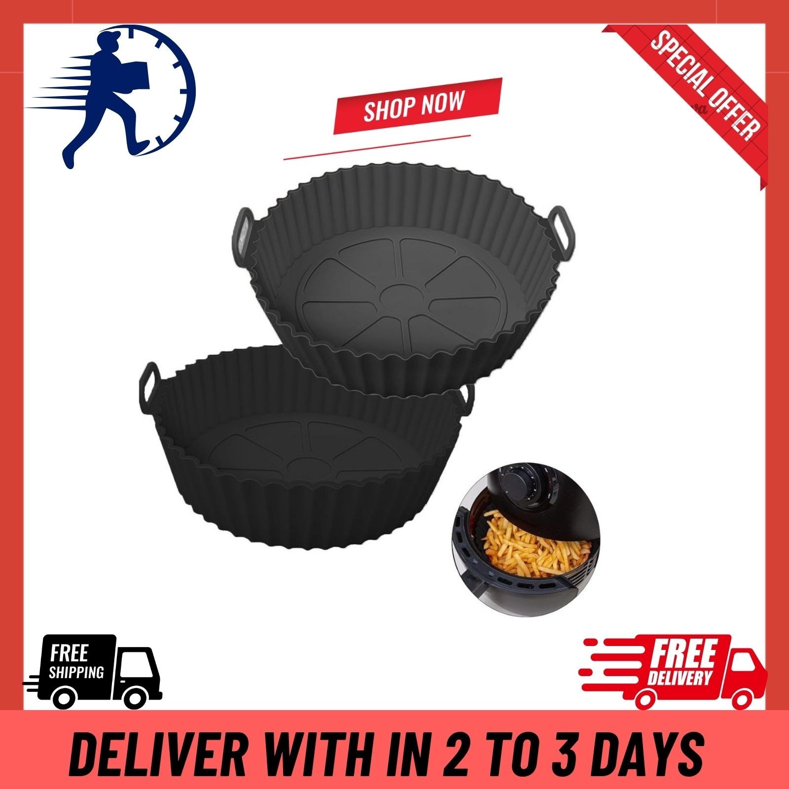 2 Pcs Premium Circular Air Fryer Silicone Liner for Ninja 3.8L AF100UK & Other 3.8L+ Circular & Square Air Fryers | 2.5mm Liner Thickness & 8mm high Silicone Lines on Base | Air Fryer Liners Round