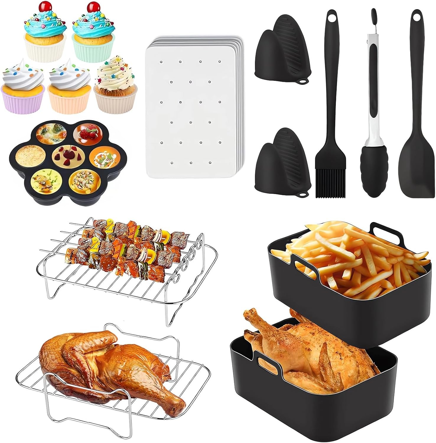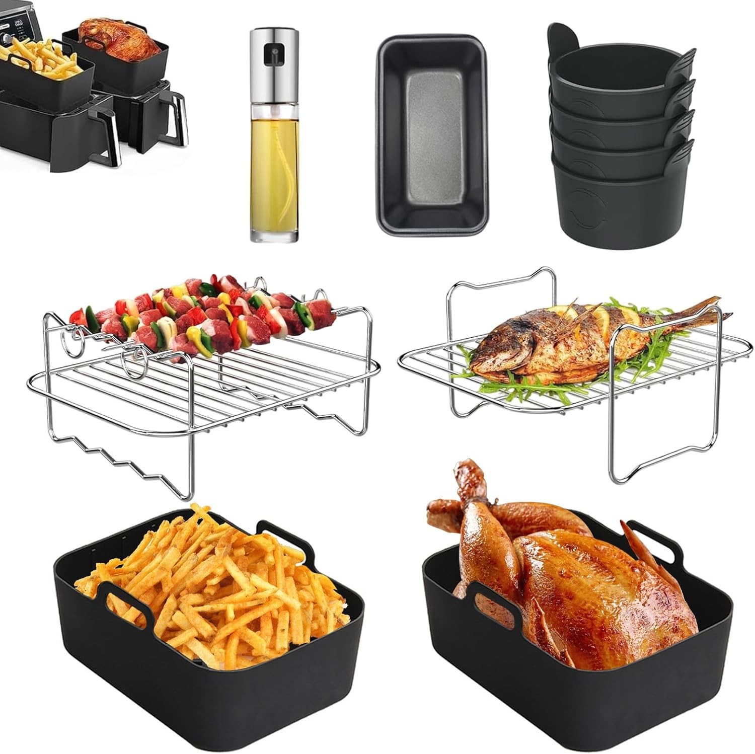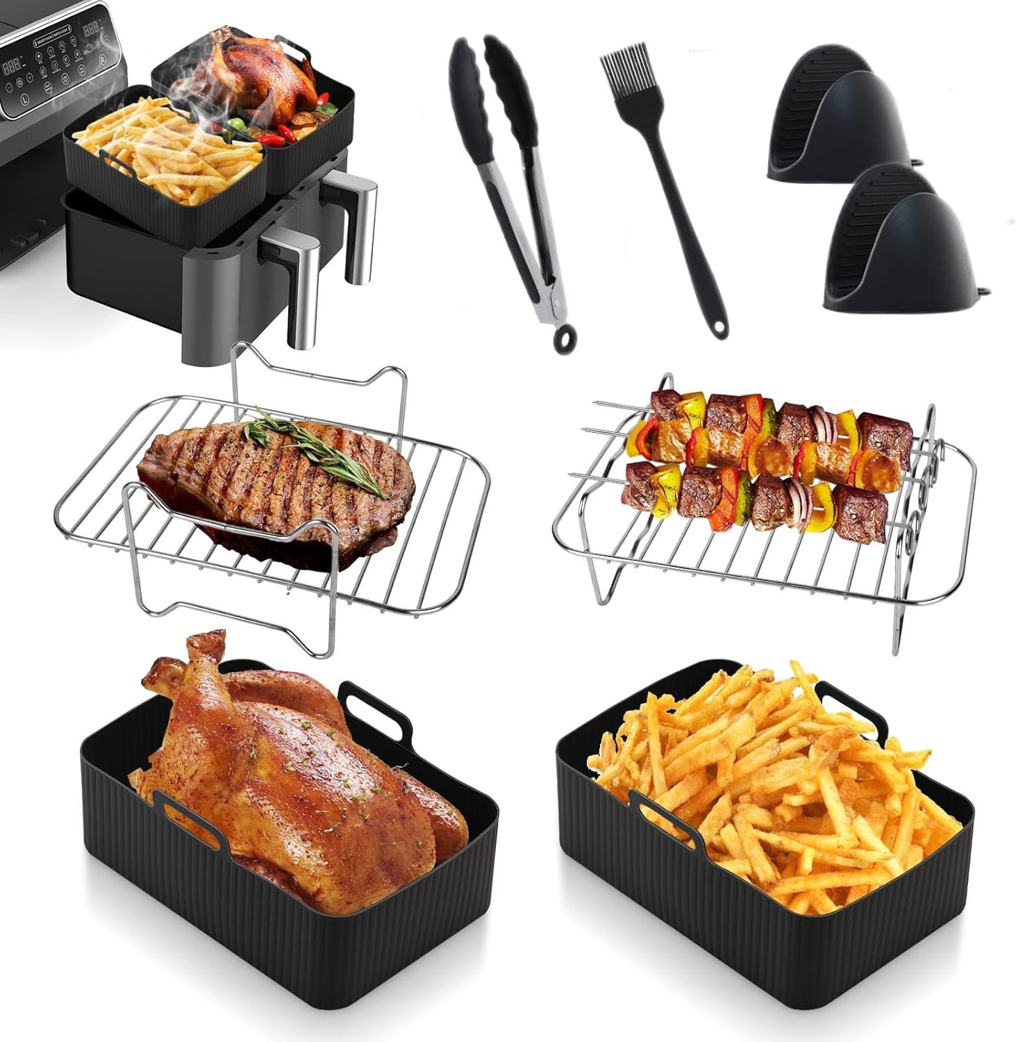 Large Size Air Fryer Accessories, Set of 11 for Ninja Air Fryer Accessories Compatiable with Ninja Foodi Dual Air Fryer Af400UK & AF451UK & Most 9.5L Air Fryers, Upgraded, Silicone Air Fryer Liner