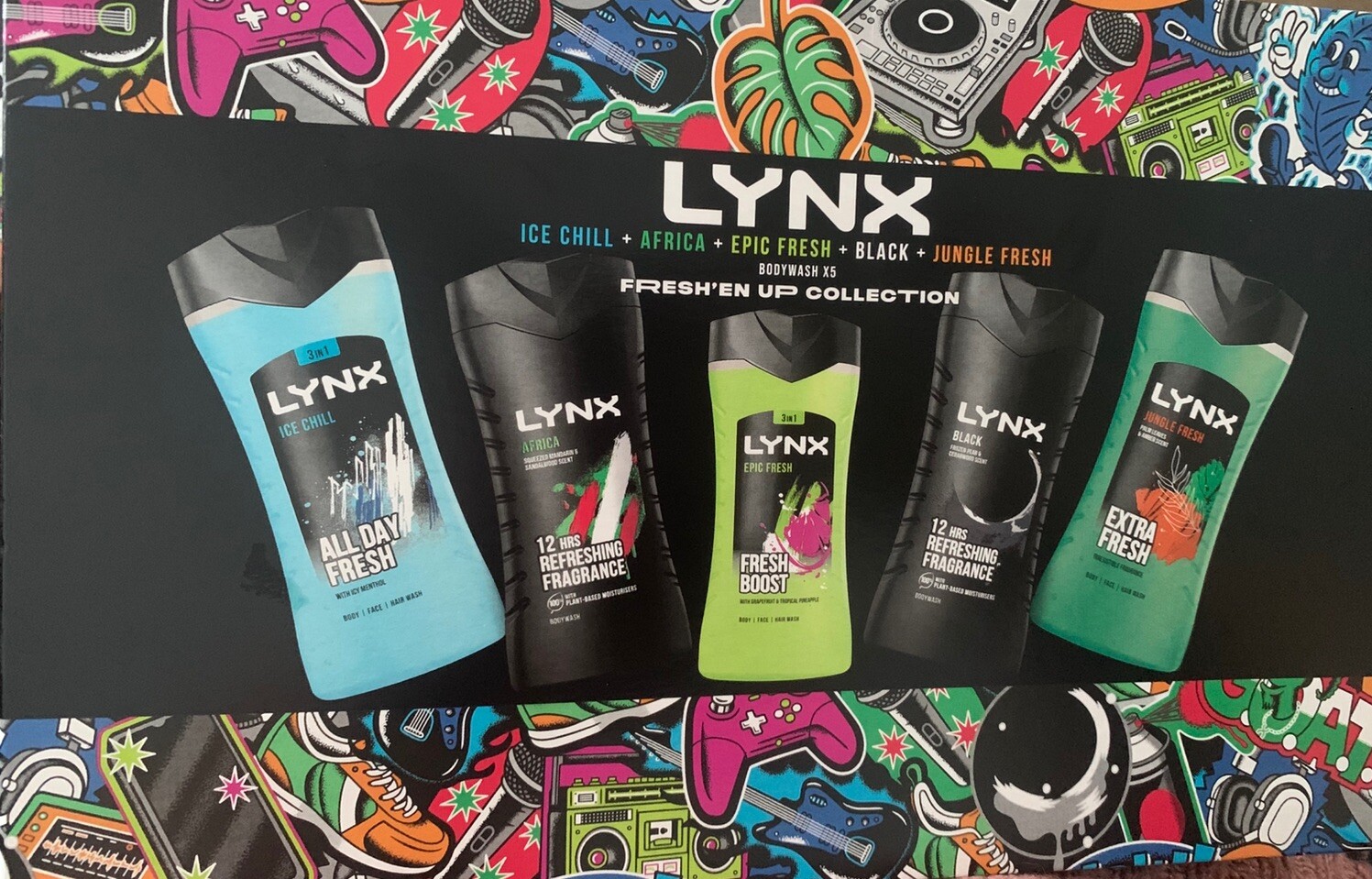 Lynx Shower Gel Selection Box Gift Set 5 x 225ml Jungle Fresh Ice Chill Africa